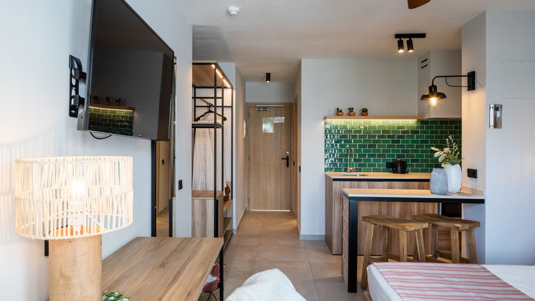 Descubre tu refugio de 25m2 donde el confort y la libertad van de la mano. Este estudio está pensado para que vivas Ibiza como siempre soñaste: un balcón perfecto para tus morning coffees o sunset drinks, cocina americana para dar rienda suelta a tu creatividad y un espacio de descanso que te hará sentir como en casa. Reserva tu apartamento en Sant Antoni, Ibiza.